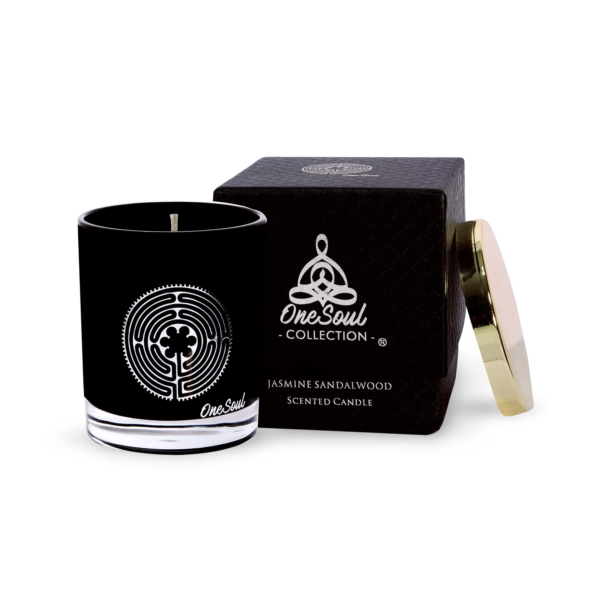 Jasmine Sandalwood Aromatherapy Candle, Earthy Scented Candles, Luxury Candles Scented with Chartres Symbol, Hand-Poured Soy Candle, 50 Hours Burn Time, 7.6 oz. – OneSoul Collection